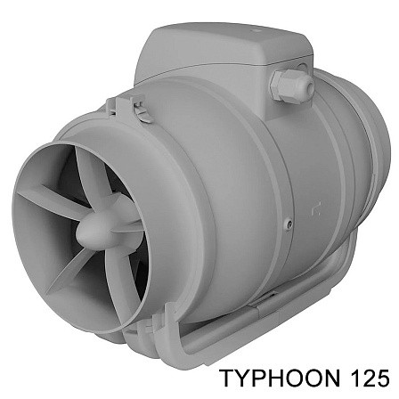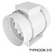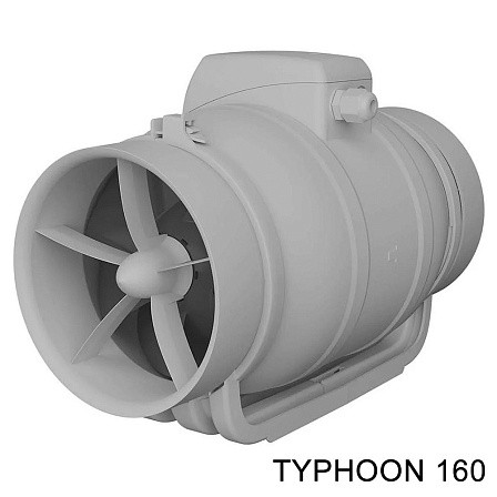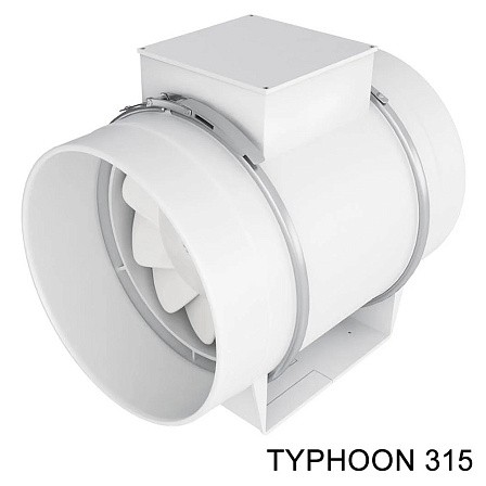 Вентиляторы TYPHOON имеют съемный центральный блок с двигателем, крыльчаткой и клеммной коробкой, которые крепятся к патрубкам хомутами. Данная конструкция упрощает обслуживание. В моделях TYPHOON 100-200 хомуты пластиковые, в TYPHOON 250, 315 - металлические. Корпус вентилятора и рабочее колесо из пластика. Класс защиты IP 44 позволяет использовать вентиляторы во влажных помещениях.