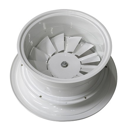 Вихревой режим течения приточного воздуха на выходе из закручивателя позволяет повысить коэффициент эжекции окружающего воздуха к приточной струе по сравнению с прямоточными струями и, как следствие, увеличить интенсивность снижения скорости и выравнивания температуры в струе с температурой помещения. Изделие может использоваться также и для удаления воздуха из помещений.